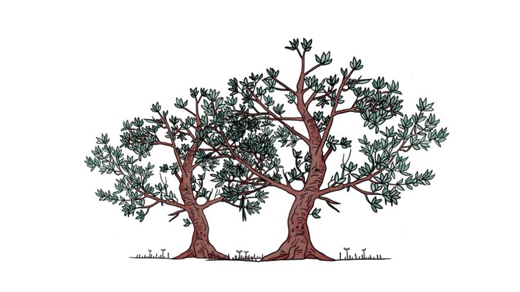 A shoreline forest of special trees growing in salty mud and tidal water that protects the coast and provides homes for fish, birds and crabs.