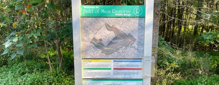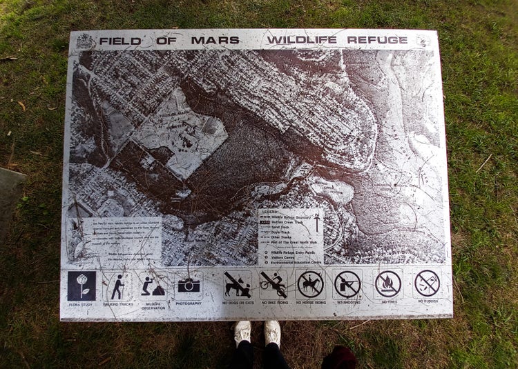 View the image gallery showing the signs in Field of Mars Reserve to identify: