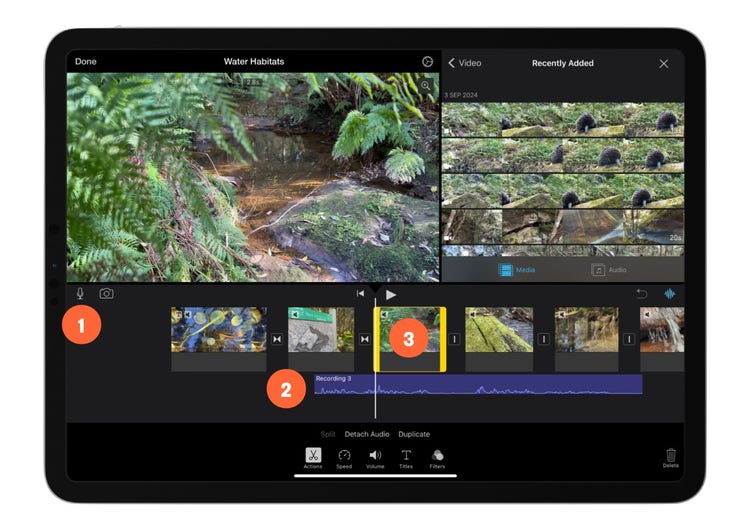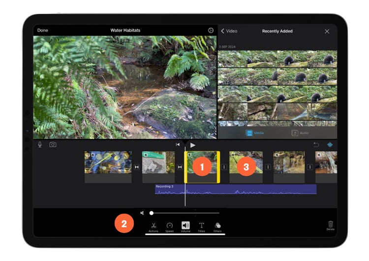 There are many different apps you can use to edit your nature documentary. We are going to use iMovie on iPad however most editing apps work in similar ways.